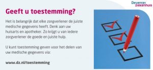 Dit kan eenvoudig online via www.dz.nl/mijndz. Ook kunt u in het Deventer Ziekenhuis bij de receptie of bij de balie van een polikliniek toestemming geven.